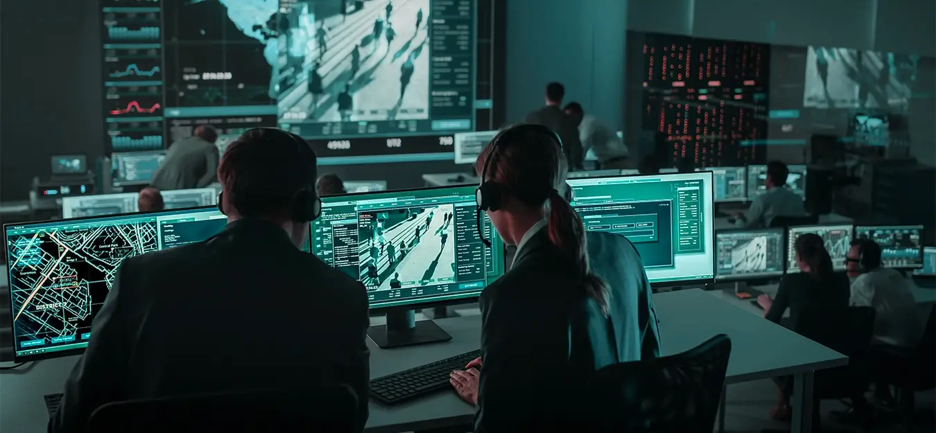 Simultaneous multi-site monitoring with hierarchical camera groups and user-specific layouts. Operator activity logging and shift handover protocols ensure continuous operational coverage.